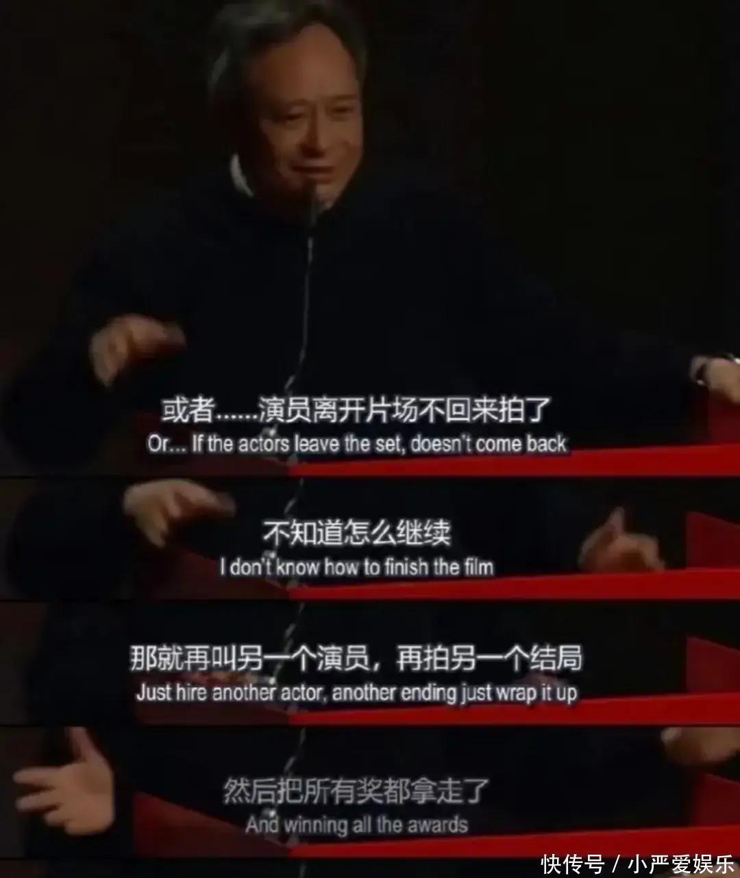 李安对王家卫电影的评价,是称赞或质疑,是嫉妒或讥讽,从他的一段话中就仁者见仁了。“他可以拍了几个礼拜,几个月,几年,然后再扔了从头来过。或者是把最震撼的影像和隐喻,与浪漫绝美的表演场景糅合在一起。意义难明的时候,就再加入一些如梦似幻的对白与独白……然后把所有的奖都拿了,我真希望我也可以做到。”
